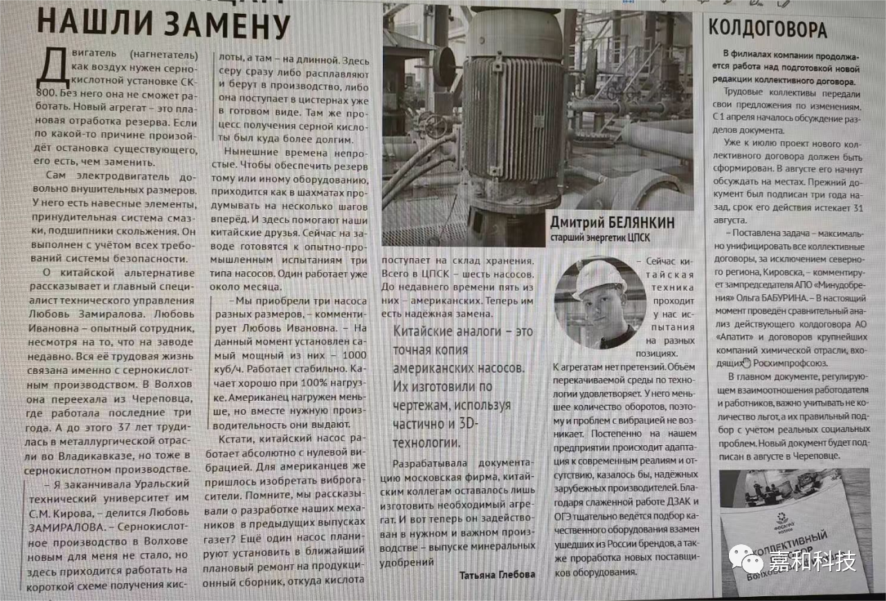 今年俄羅斯知名期刊上刊載了一篇文章,文章大致內容是今年俄羅斯大型磷肥企業(yè)用三臺中國泵更換了三臺美國泵,經過一段時間的運用,這三臺來自中國的工業(yè)泵可靠性高,運行穩(wěn)...