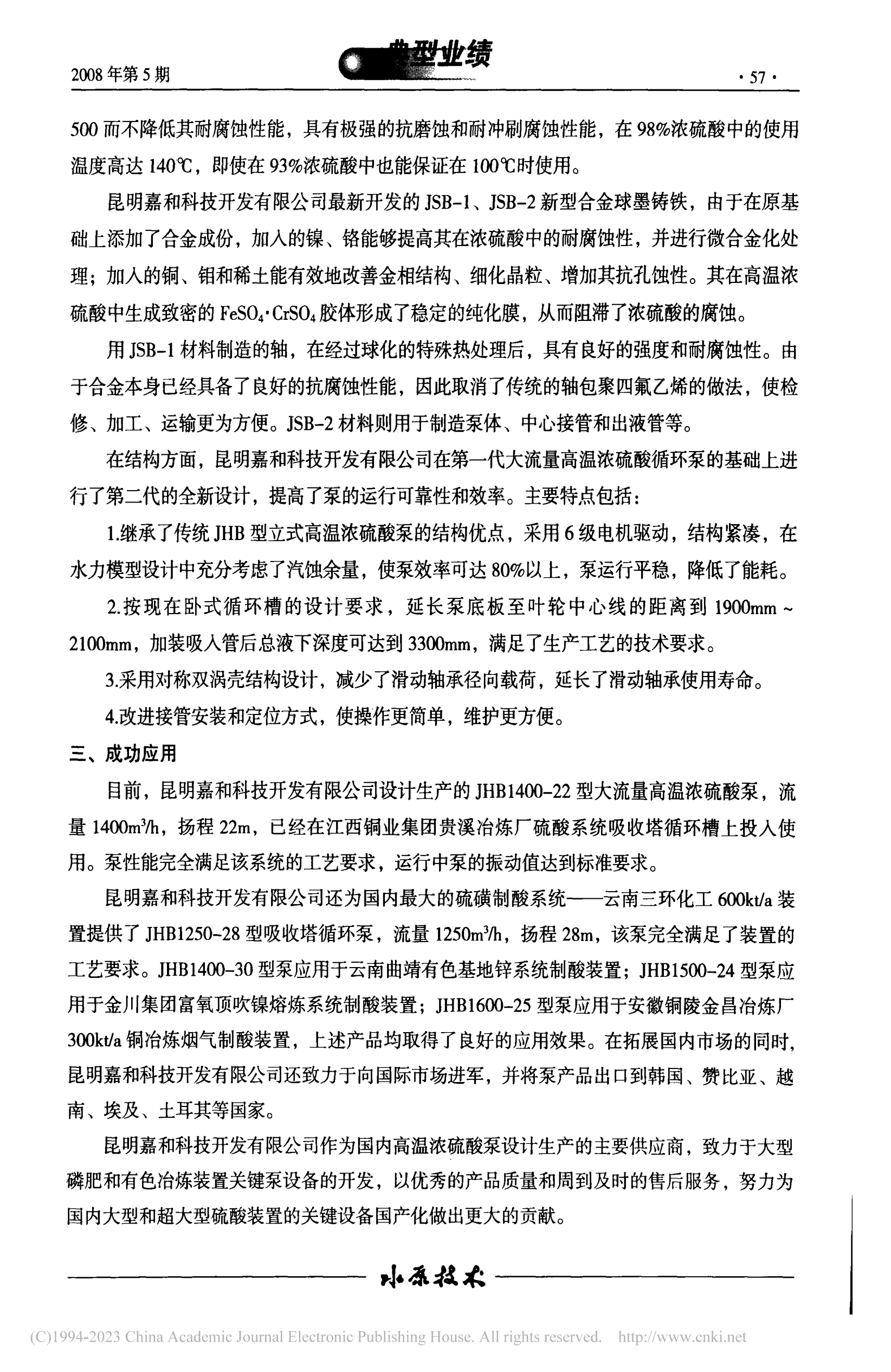 大流量高溫濃硫酸循環(huán)泵的成功應用