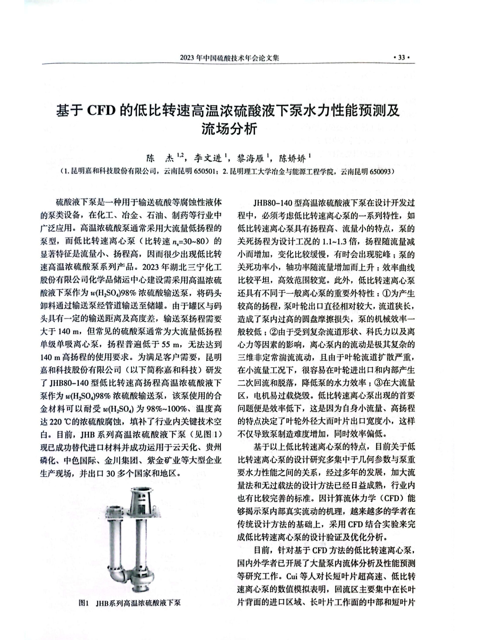 基于CFD的低比轉(zhuǎn)速高溫濃硫酸液下泵水力性能預(yù)測(cè)及流場(chǎng)分析