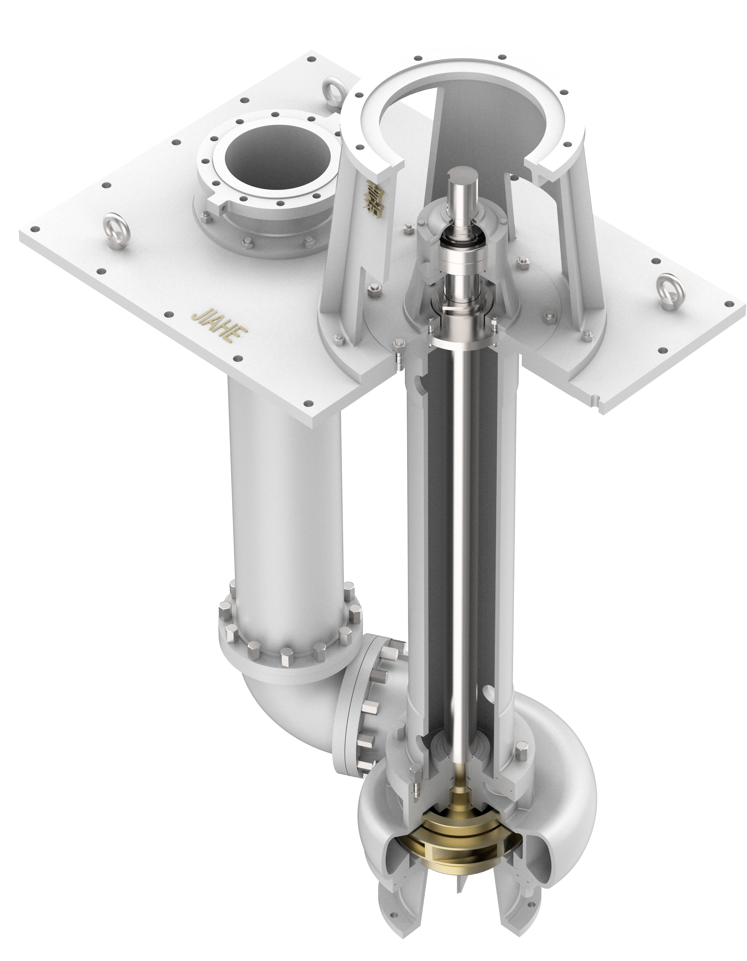 JHB系列泵是單級(jí)、單吸、軸向吸入徑向剖分液下離心泵,符合API610-11th標(biāo)準(zhǔn)。該系列泵液下深度可達(dá)3.6米,采用雙支撐結(jié)構(gòu),液上采用兩列角接觸球軸承,承受軸向載荷,液下設(shè)有一對(duì)或兩對(duì)滑動(dòng)軸承(即軸套、襯套),承受徑向載荷。過流部件選用優(yōu)質(zhì)耐高溫硫酸腐蝕的JSB合金材料,具有壽命長(zhǎng)優(yōu)點(diǎn)。