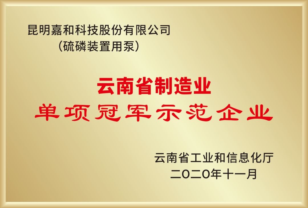云南省制造業(yè)單項冠軍示范企業(yè)
