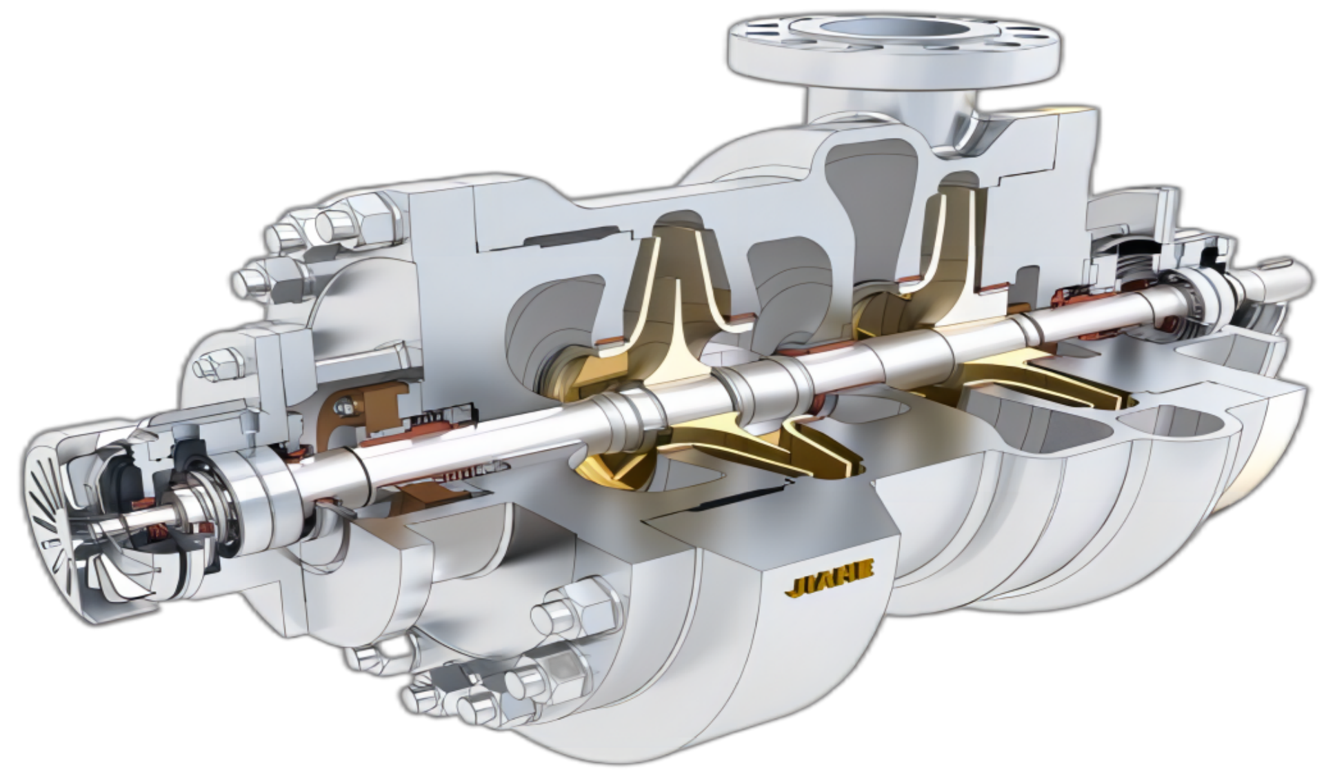JHBB/JHBD 系列為兩級(jí)、徑向剖分兩端支承離心泵。符合 API610-11th 標(biāo)準(zhǔn)。JHBB 為首級(jí)單吸,JHBD 為 首級(jí)雙吸。進(jìn)出口法蘭尺寸滿(mǎn)足 ANSI 或 ISO 標(biāo)準(zhǔn)。密封腔的設(shè)計(jì)符合 ISO21049/API682 密封標(biāo)準(zhǔn) , 適合安裝 集裝式單封、有壓串封或無(wú)壓串封。沖洗、冷卻、加熱、急冷和緩沖液管路的連接符合 API 方案。